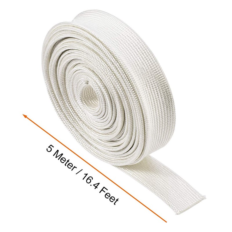 uxcell Insulation Braid Sleeving, 16.4Ft-16mm High TEMP Fiberglass Sleeve White