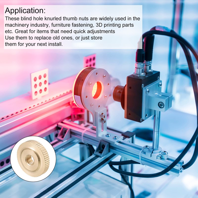 - Application: These knob nuts with eyelet knurling are widely used in the machine industry, furniture fixing, 3D printed parts, etc. Ideal for items that require quick adjustment. Use them to replace the old one or store them for the next installation!