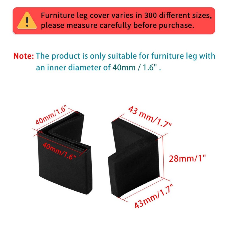 uxcell 足カバー エンドキャップ プロテクター ゴム L型アングル材 ブラック 43 x 43 x 28mm 8個入り