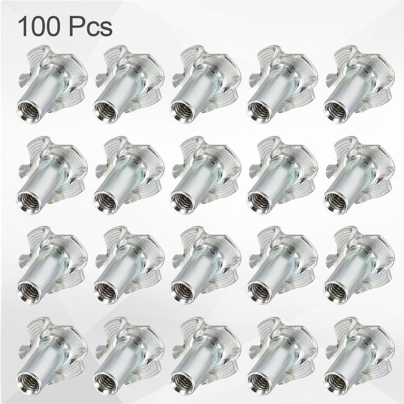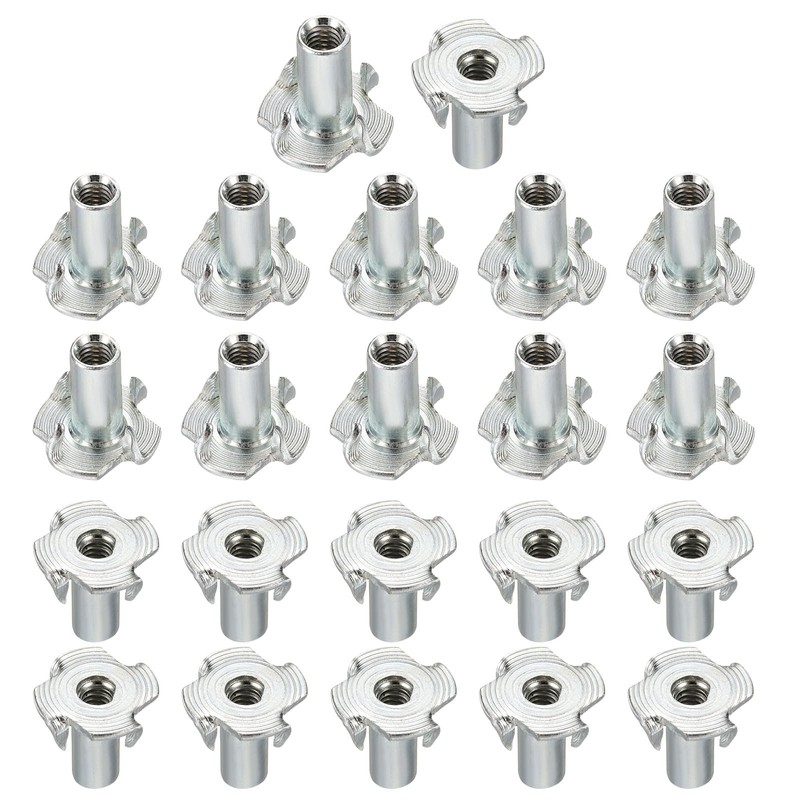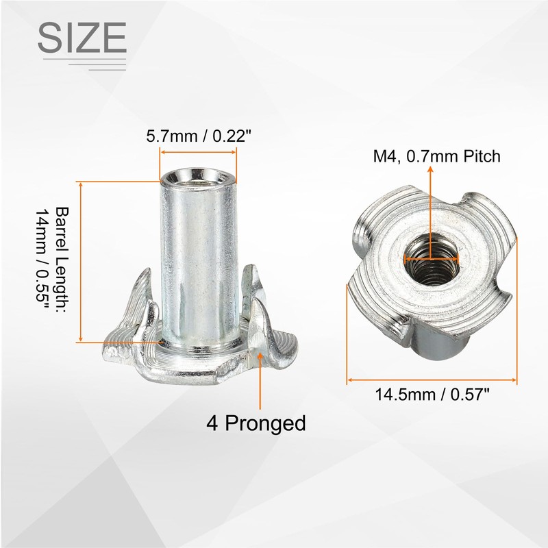 uxcell M4x14mm T Nut 4 Prong Tee Nut 0.57" x 0.55" Wood Rock Climbing Hold for Cabinet Furniture Full Thread Carbon Steel Insert 100pcs