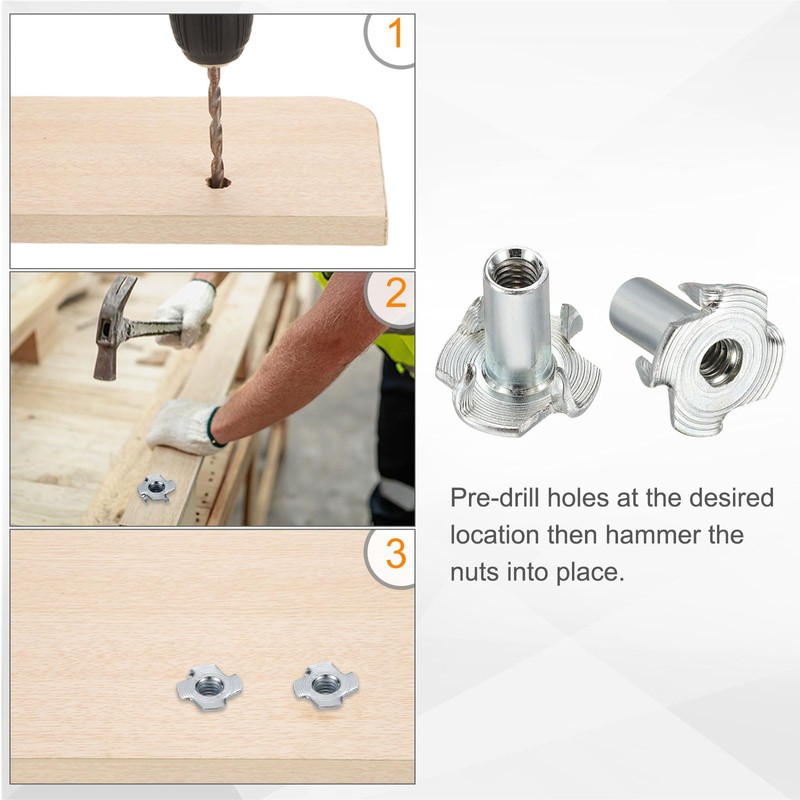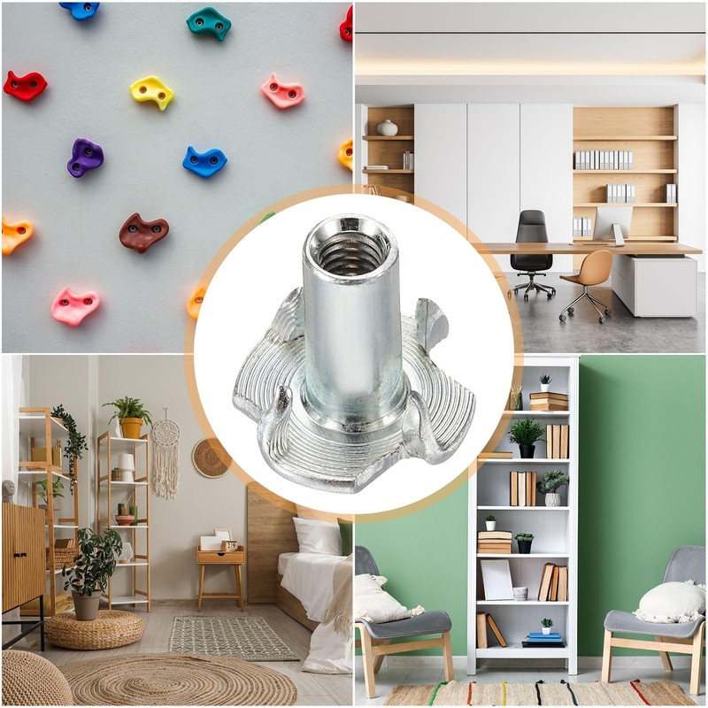 - WIDE APPLICATION - The high carrying capacity of the T-nuts is suitable for hardwood products, plywood, furniture, climbing walls, DIY tasks, furniture repair, woodworking projects, and so on, suitable for a wide range of indoor and outdoor situations
