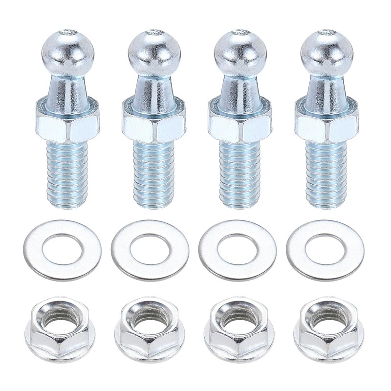 uxcell M8 x 0.5" Ball Stud Bolt, Stainless Steel Gas Spring End Fitting with Hardware Lift Support Strut Fitting for Gas Struts Ball Ended Bonnet, Silver 4pcs