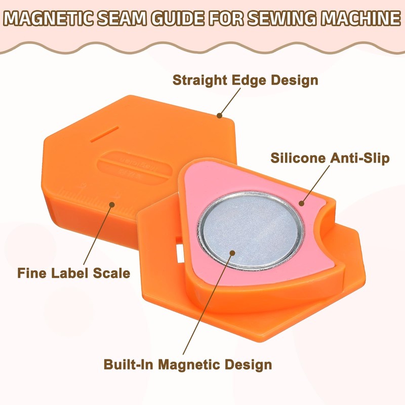 - [Easy to Use]: No additional tools are required to use the seam guide. Just place the guide on the needle plate of the sewing machine and let the fabric slide along the guide. When adjustment is needed, just lift and reposition the guide, and the magnetic seam guide can be easily adjusted and removed