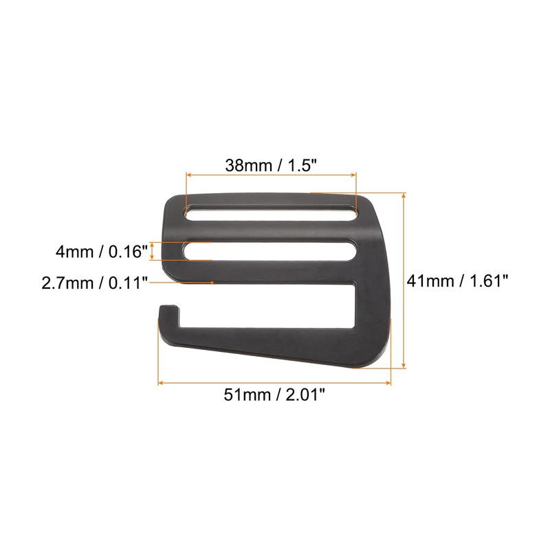 • [G-Hook Wave Buckle] - This set contains 4 pieces of matte black adjuster slide buckles. Total Size: 45mm x 41mm x 2.7mm/1.77" x 1.61" x 0.11"(L*W*T); Inner Size: 32mm x 4mm/1.26" x 0.16"(L*W).