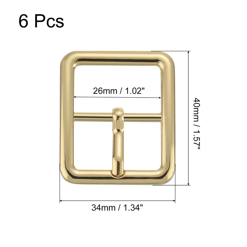 - [Center Bar Buckles] - Total Size: 40mm x 34mm/1.57" x 1.34"(L*W); Fit Belt Width: 26mm/1.02"; Color: Gold; Package Included: 6Pcs x Metal Roller Buckles.