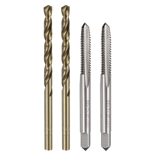 uxcell Metric Tap & Drill Bit Set, 2pcs M6 x 1.25 Straight Flute Thread Taps and 2pcs 4.7mm Twist Drill Bits Roasted Yellow, Screw Tapping Threading Tools