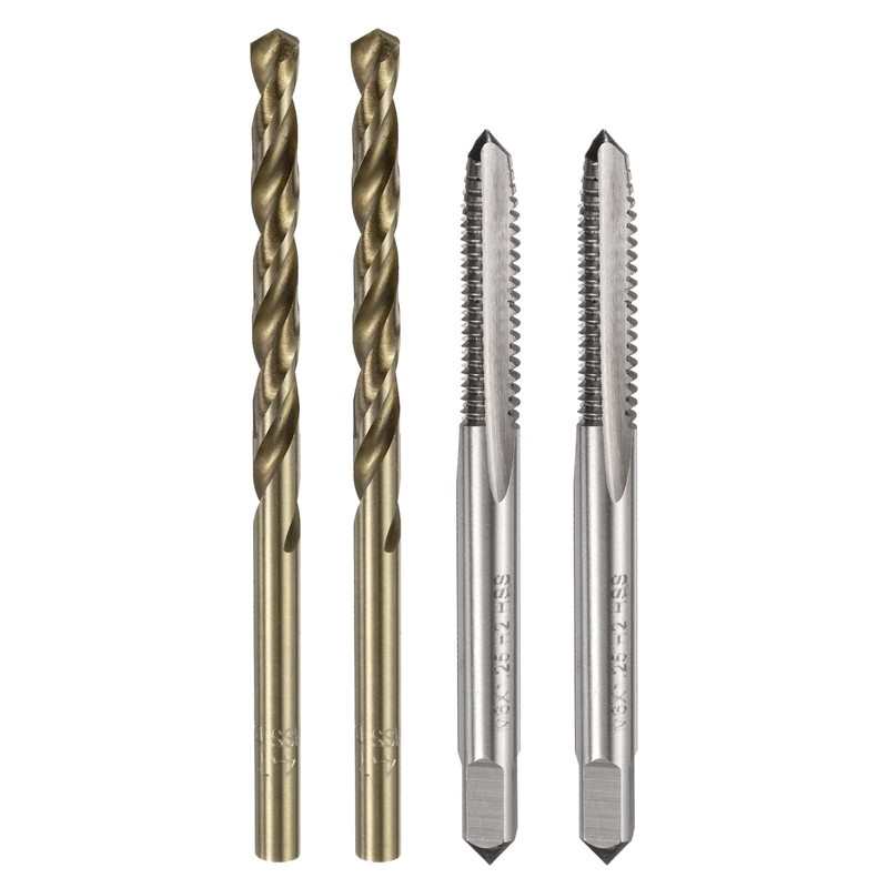 M35 cobalt high-speed steel drill bits offer improved hardness, wear resistance, and higher strength. 6542 (M2) high speed steel taps offer excellent heat resistance, high hardness and good toughness for durability and service life. Roasted yellow finish on drill bit effectively removes oxidation on the metal surface, and increases its corrosion resistance. Uncoated thread tap is great for a wide range of applications.