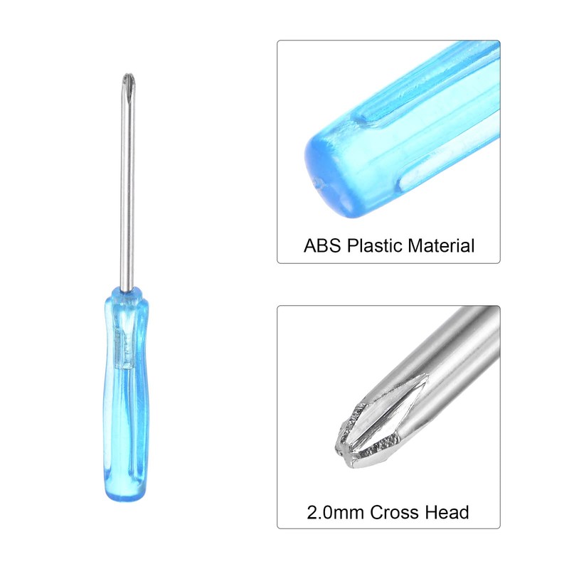 - Size - 2.0mm cross head, 2.56" (65mm) total length. This screwdriver is a small screwdriver, suitable for handling some small screws, such as those used in electronic products, glasses, watches, etc.