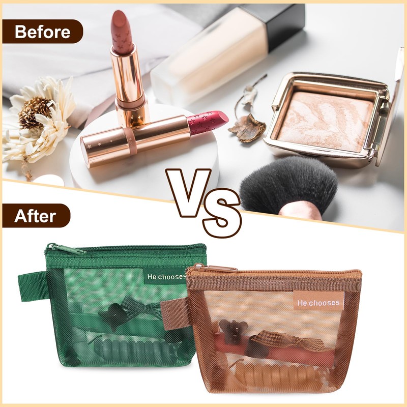 - Small and portable: The mesh zipper bag measures about 12 x 3 x 8 cm/ 5 x 1 x 3 inch(L x W x H), and can be used to store small items such as makeup mirror, lip balm, keys, coins, etc.