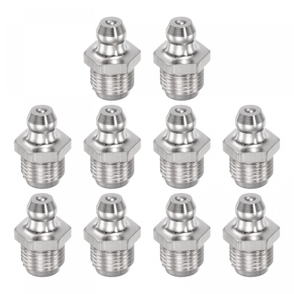 uxcell Nickel-Plated Brass Straight Grease Fitting G1/8 Thread 11mm Width Hydraulic Grease Fitting Accessories, 10Pcs