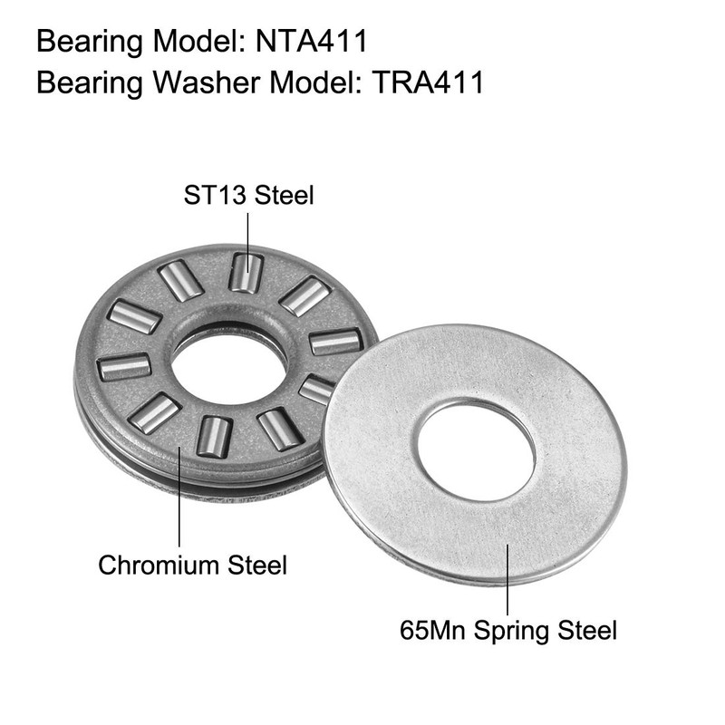 - [MODEL] - Bearing Model: NTA411 (I.D.=1/4-inch, O.D.=11/16-inch, Bearings Thickness(T1)=5/64-inch; Washer Thickness (T2): 0.032-inch(Approx.)); Washer Model: TRA411