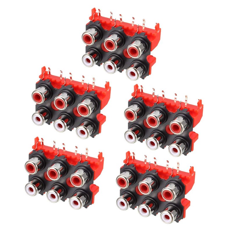 uxcell PCB Panel Mount 6 RCA Socket Female Jack Audio Video AV Connector Red 9pins 5Pcs
