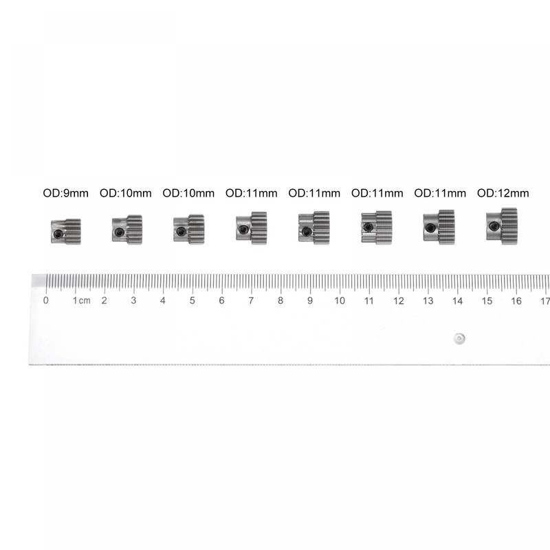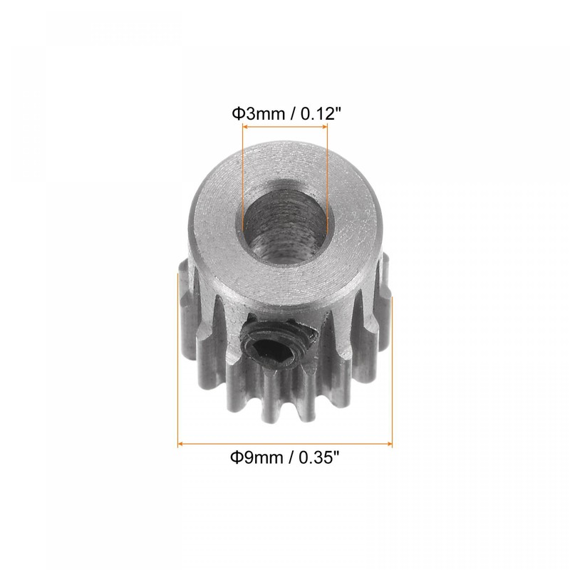 - NOTE - Pinion gear caliber is 3mm and the module is 0.5, please check the size before purchase. You will receive 1 x Stainless Steel Pinion Motor Gear and 2 x M3 Setting Screws
