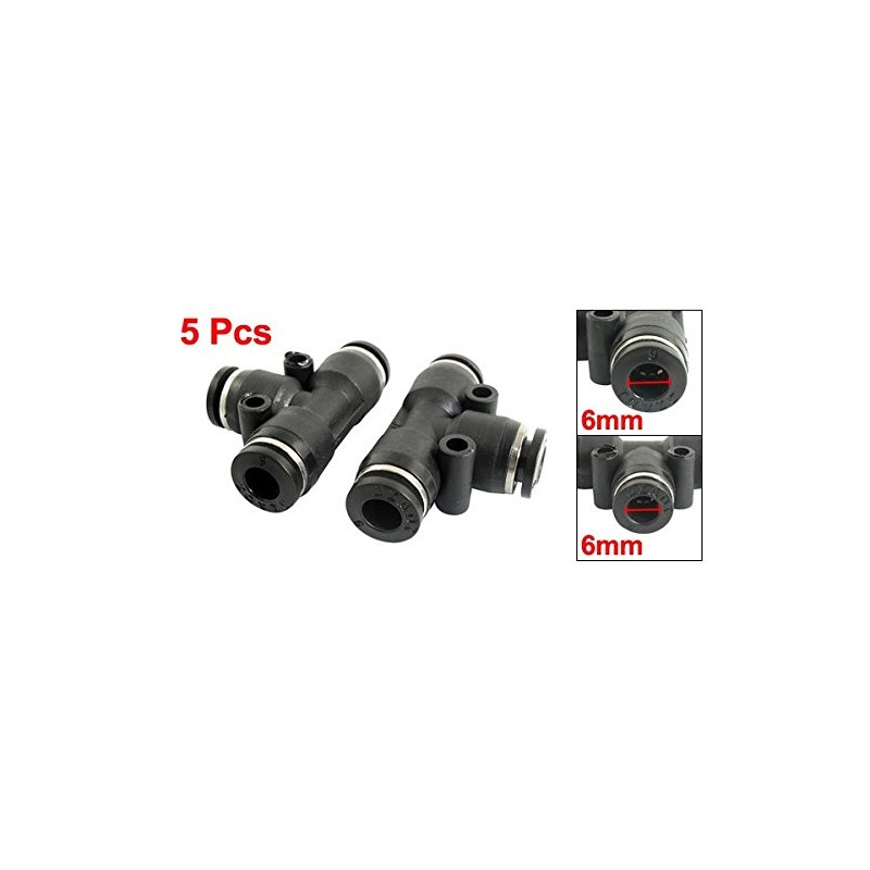 uxcell Pneumatic Quick Fitting Fittings, Black, Plastic, 0.2 - 0.2 inches (6 - 6 mm), T-Shape, Pack of 5