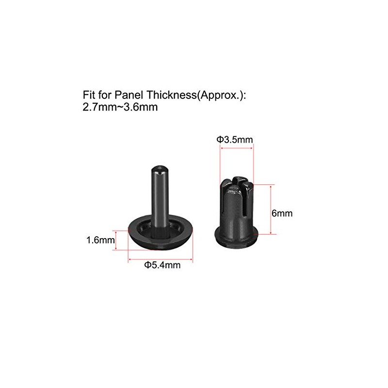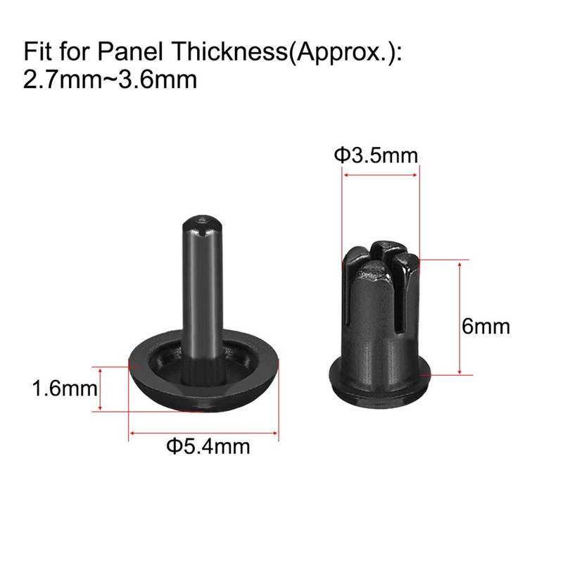 - Fit Hole Diameter(Approx.): 3.5mm; Base Rod Height(Approx.): 6mm; Fit for Panel Thickness(Approx.): 2.6mm~3.6mm.
