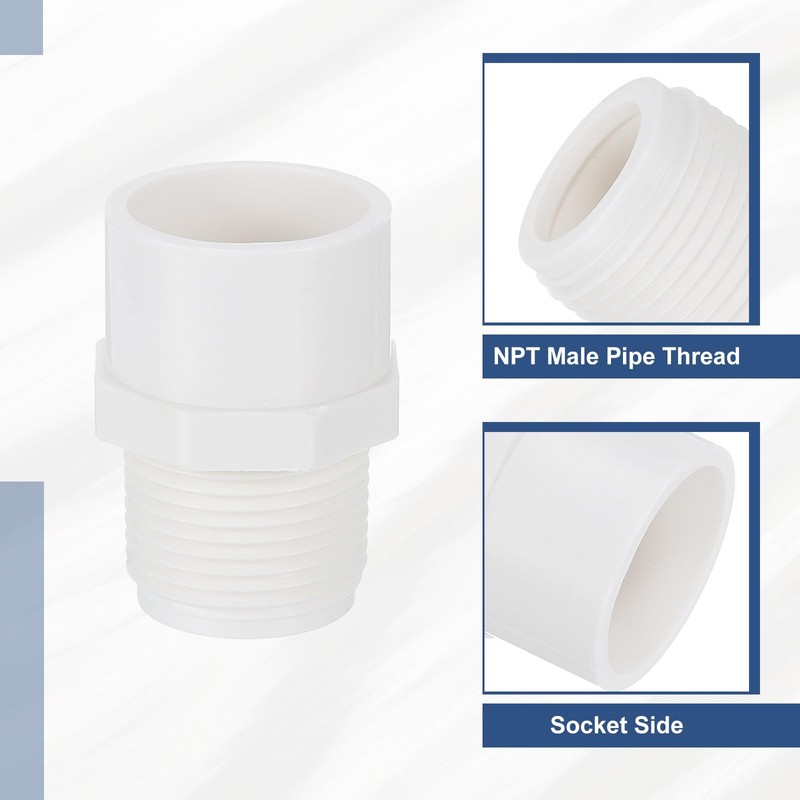 uxcell PVC Male Adapter Pipe Fitting, 5Pcs 3/4" 2-Way PVC Pipe Connectors with Sealant Tape (Socket x Male Thread), Hose Adapter Coupling for Plumbing Water Line (White)
