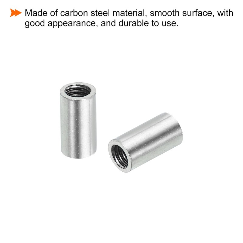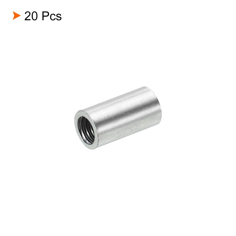 uxcell Round Coupling Nuts M4x0.7mm Female Thread 10mm Thread Round Sleeve Connecting Rod Stud Tube Nuts Hardware Fasteners Silver Pack of 20