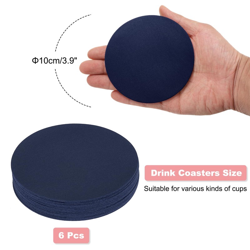 uxcell Round Drink Coasters Set of 6 Dual Sided Non-Slip Non-Stick Waterproof Leather Coasters for Drinks, Coffee Table, Housewarming Gifts, Home Decor 4"×4"Navy Blue