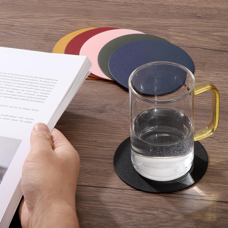 - HEAT RESISTANT & WATERPROOF: Coasters for drinks are made of PU leather, super heat-resistant, and more waterproof than other silicone or ceramic coasters. Use them for cold or hot drinks! Enjoy your favorite beverage, like beer, wine, cocktail, ice water, coffee, tea, or hot chocolate. They protect your furniture, tabletops, and countertops.
