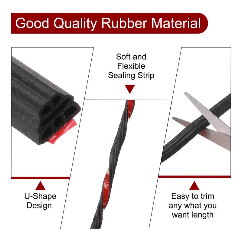 - Dimension: The door frame seal has a Total length of 5m/ 16Ft; Base Width:10mm /0.4 inches; Thickness: 9mm/0.4inch;