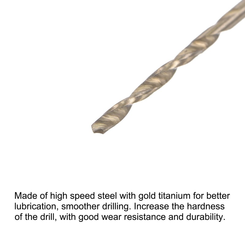 - Material: Made of high-speed steel, with gold titanium coating for improved lubricity and smoother drilling. Increased hardness of the drill, more wear-resistant and durable