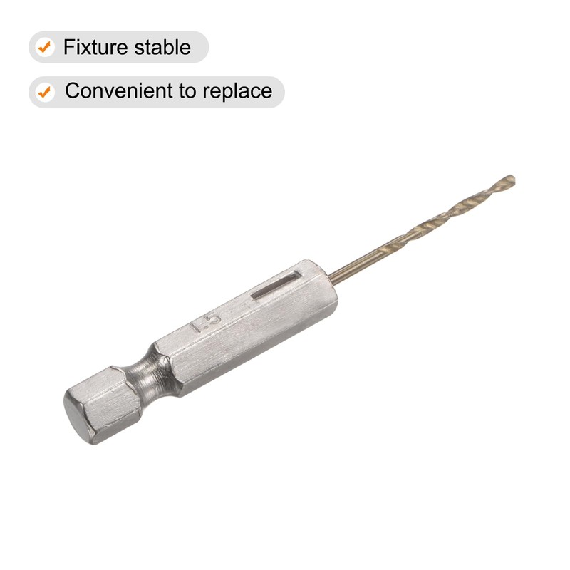 - Specifications: Shank: 1/4" Hexagon; Drill Diameter: 1.5mm / 0.06"; Total Length: 60mm / 2.36"; Drill Bit Length: 14mm / 0.55"; 4 Twist Drill Bits