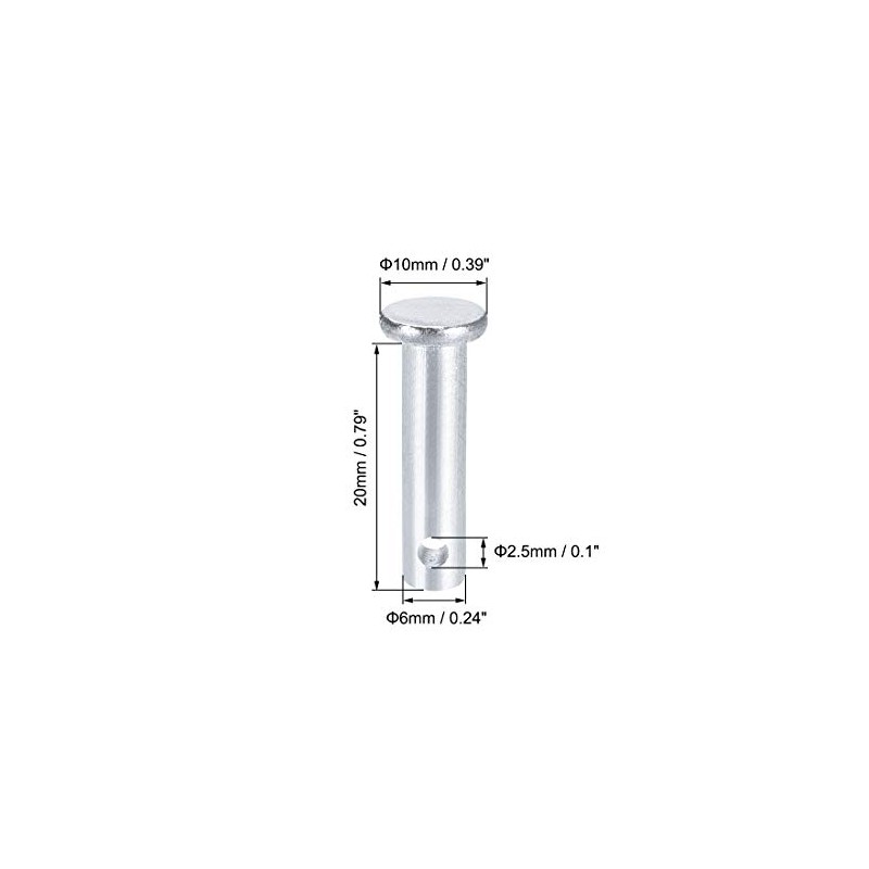 uxcell Single Hole Clevis Pins - 6mm X 20mm Flat Head Zinc-Plating Solid Stee...