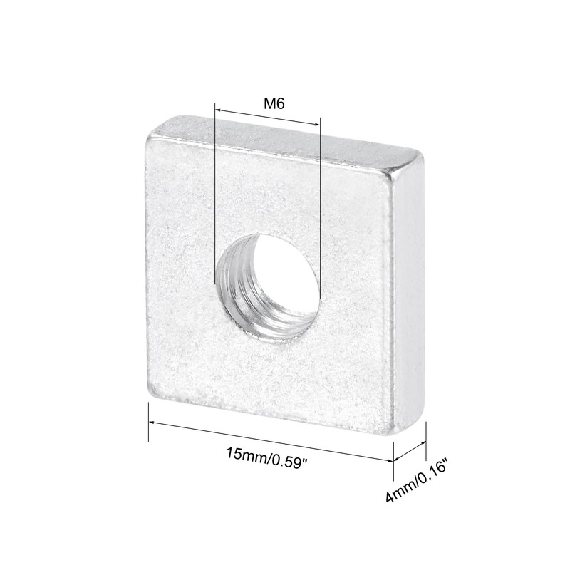 uxcell Square Nuts, Square Nuts, M6x15mmx4mm, Zinc Plated, Metric Thread Set, 25 Pieces