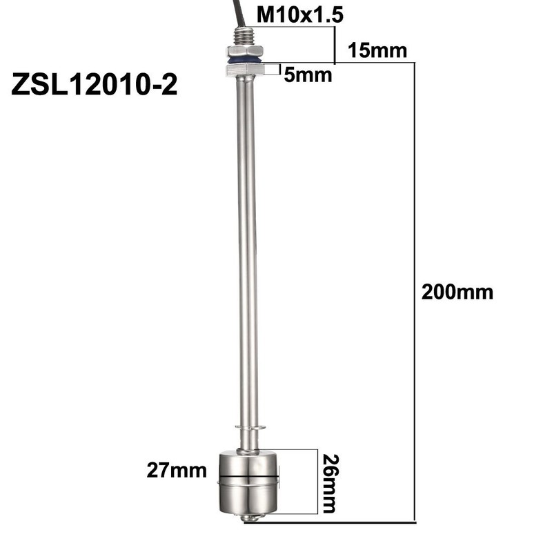- Max Switching Voltage : DC110V; Max Switching Power : 10W; Float Ball Size : 26x27mm; Wire Length : 310mm; Screw : M11