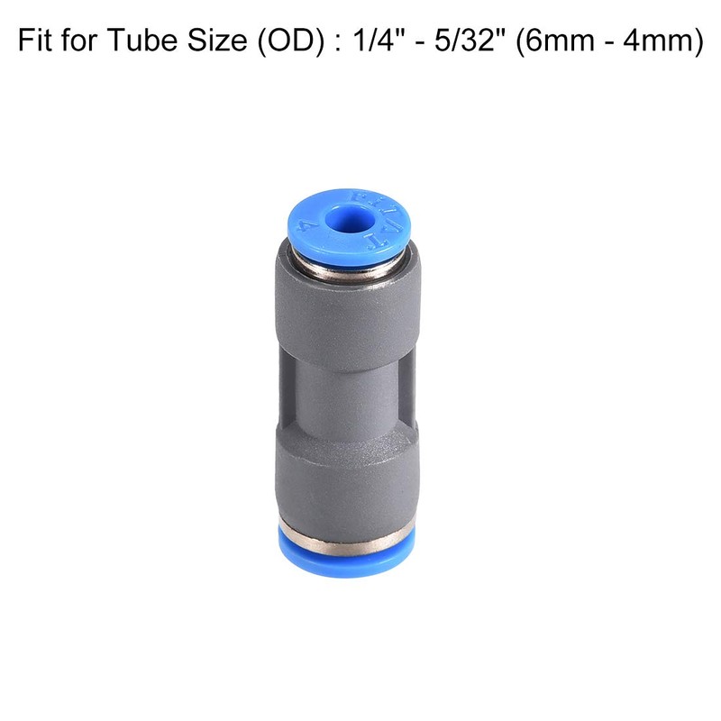 uxcell Straight Push-Connector Reducer Fitting 6mm-4mm Quick Release Pneumatic Connectors Plastic Union Pipe Tube Fittings Gray Pack of 5
