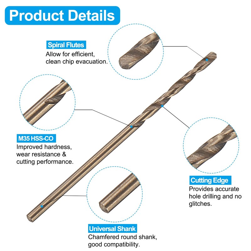 - Tap and Drill Bit Set: 3pcs M2 x 0.4 (right wound) thread taps and 3pcs 1.6mm (right wound) drill bits 6542(M2) high speed steel tap provides high hardness, excellent toughness, abrasion resistance, heat resistance and durability. M35 Cobalt High Speed Steel Drill Bit provides improved hardness, abrasion resistance, cutting performance and high strength