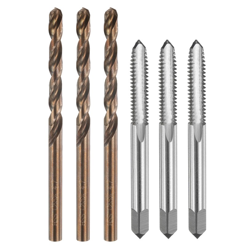 uxcell Tap and Drill Bit Set, 3pcs M6 x 1.25 Metric Straight Flute Thread Screw Taps & 3pcs 4.7mm Twist Drill Bits, Uncoated/Roasted Yellow HSS-6542/M35 HSS-CO Tapping Threading Tool