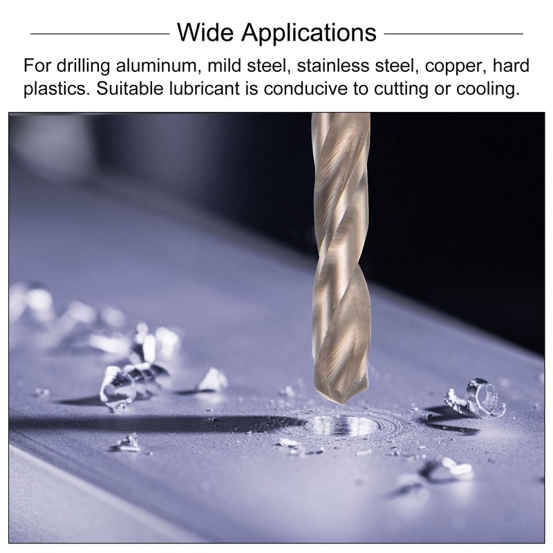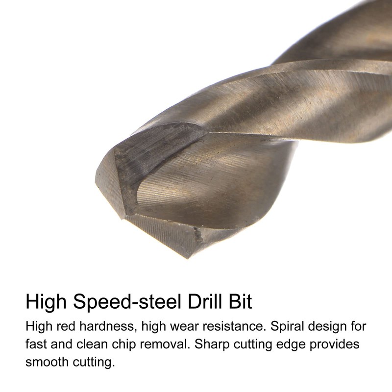 - Drill Bit: Spiral chip space design for fast and clean chip removal. Sharp cutting edge provides smooth cutting and no glitches. M35 5% cobalt high speed steel tool features high hardness (HRC65-66) and high red hardness, high wear resistance.