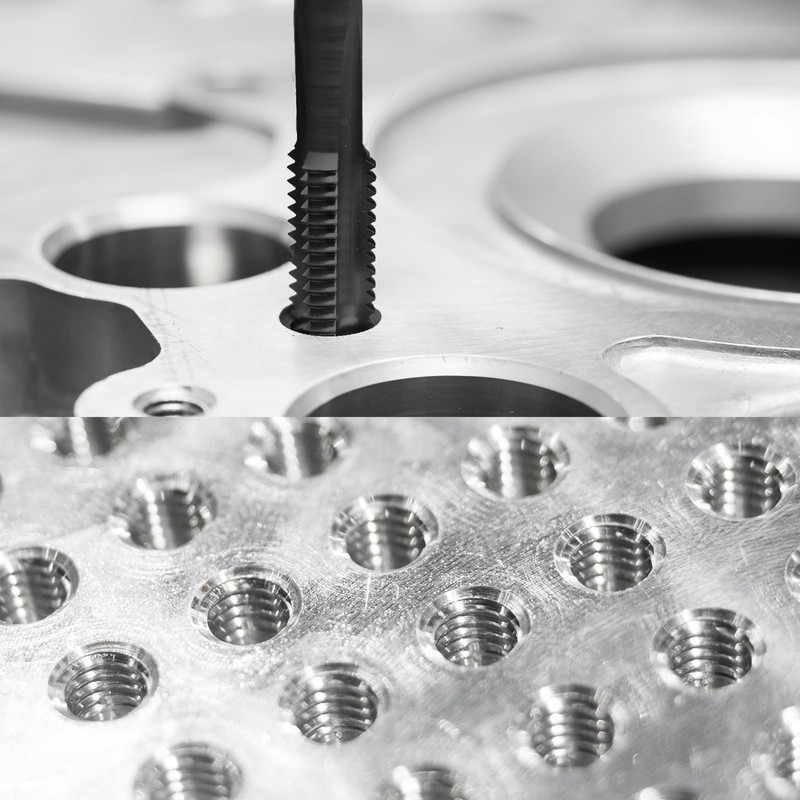 - Tips: Drill holes with a twist drill bit first, then tap with a thread tap. The tapping angle should be 90 degrees vertical and stable. The higher the hardness, the slower the speed. Fast speed with small torque; slow speed with high torque. The tapping depth should not exceed 1.5 times the diameter of the tap.