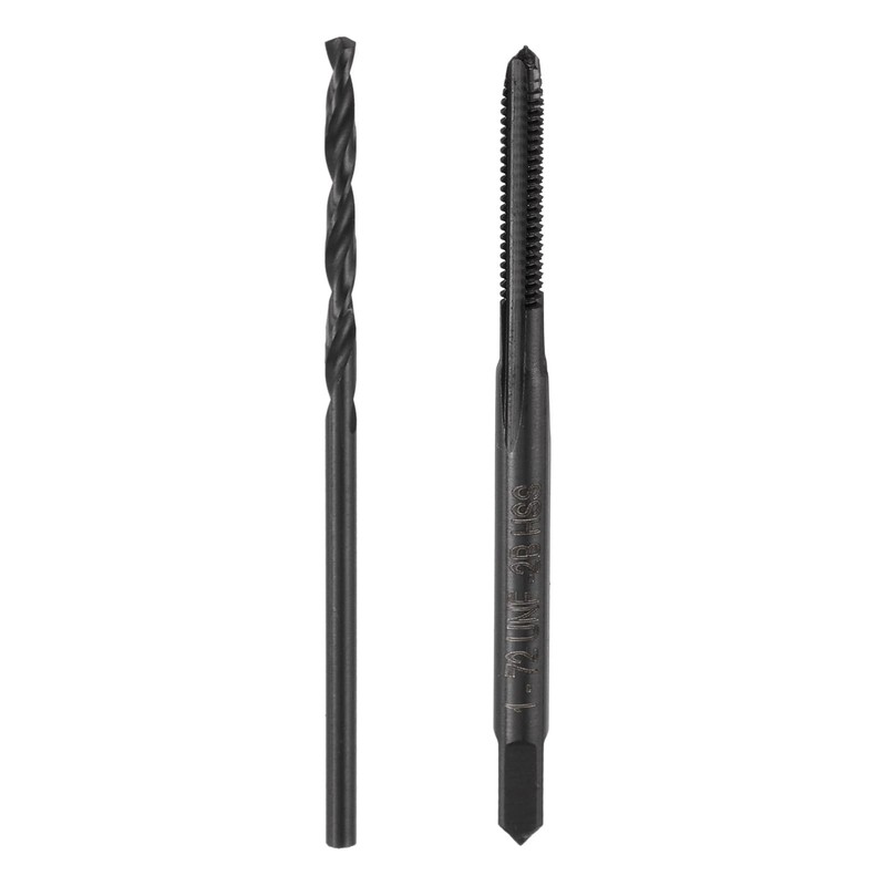 uxcell Tap & Drill Bit Set, 1pcs 1-72 UNC Straight Flute Thread Taps and 1pcs 1.5mm Twist Drill Bits, Black Oxide HSS6542 Screw Tapping Threading Tools
