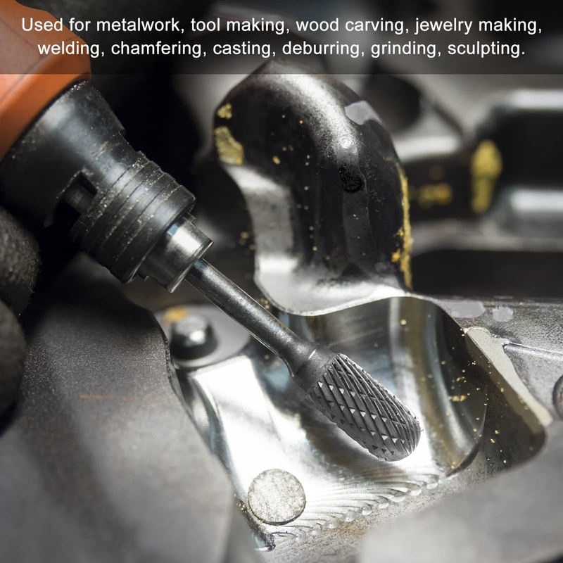 uxcell Tungsten Carbide Rotary Files 1/8" Shank, Double Cut Top Toothed Cylin...