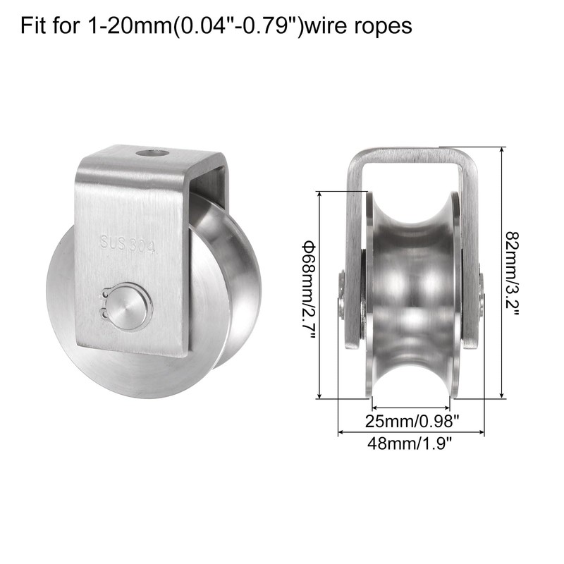 Durable Material: To ensure practicality at work, the Groove Wheel Pulley is made of durable and sturdy 304 Stainless Steel, which is anti-rust, corrosion resistant, abrasion resistant, strong structure, and high hardness.