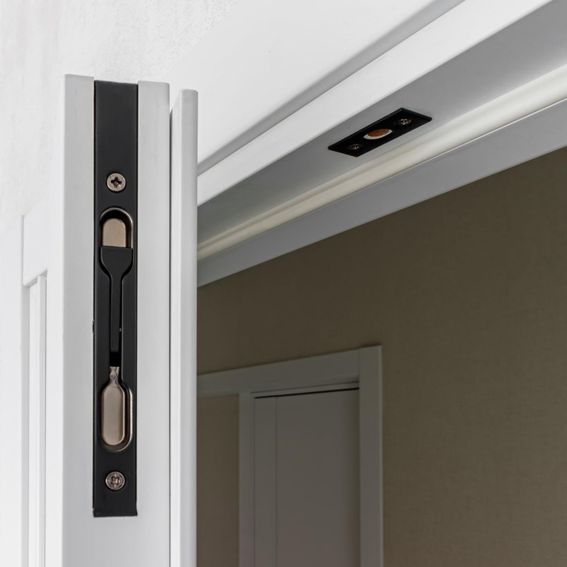 - [EASY TO USE] - Concealed slide bolt door lock, closed side panels, spring tension lever action.