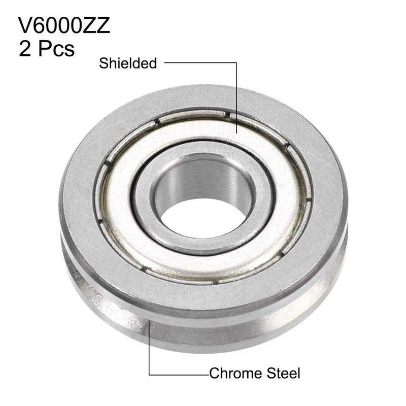 uxcell V6000ZZ V-Groove Bearing Roller Guide Bearing 0.4 x 1.2 x 0.3 inches (10 x 30 x 8 mm), Double Metal Shield, Chrome Steel, Pack of 2