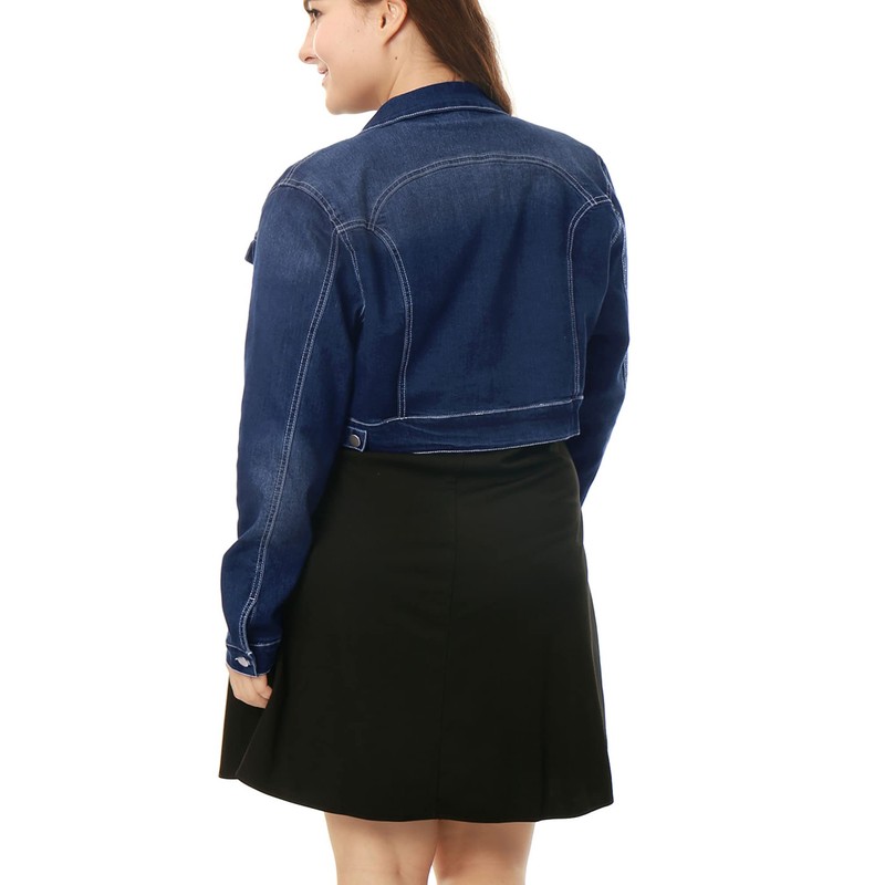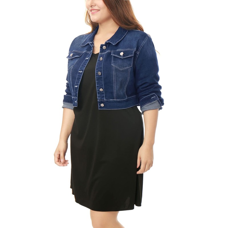 uxcell Women's Plus Size Button Closed Cropped Denim Jackets Stitching 2024 2X Dark Blue