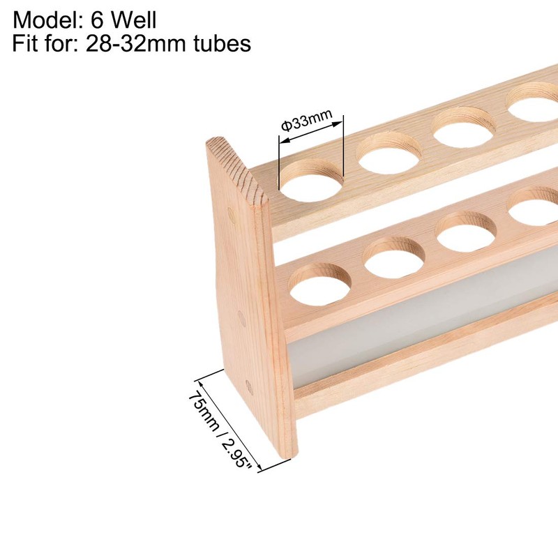 uxcell Wood 6 Wells Test Tube Holder Rack for 100ml Far Sink Tubes