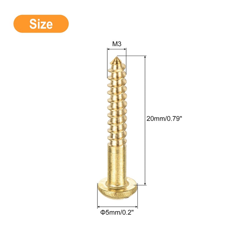 - [Product Parameter] - Thread Diameter: M3; Under Head Length: 20mm/0.79"; Head Type: Slotted Round Head; Package Includes: 20 pcs Wood Screws