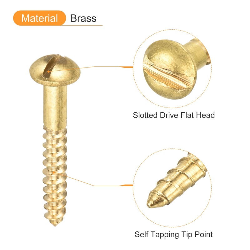 uxcell Wood Screws M3 x 20mm Slotted Round Head Brass Self Tapping Screws 20 Pcs