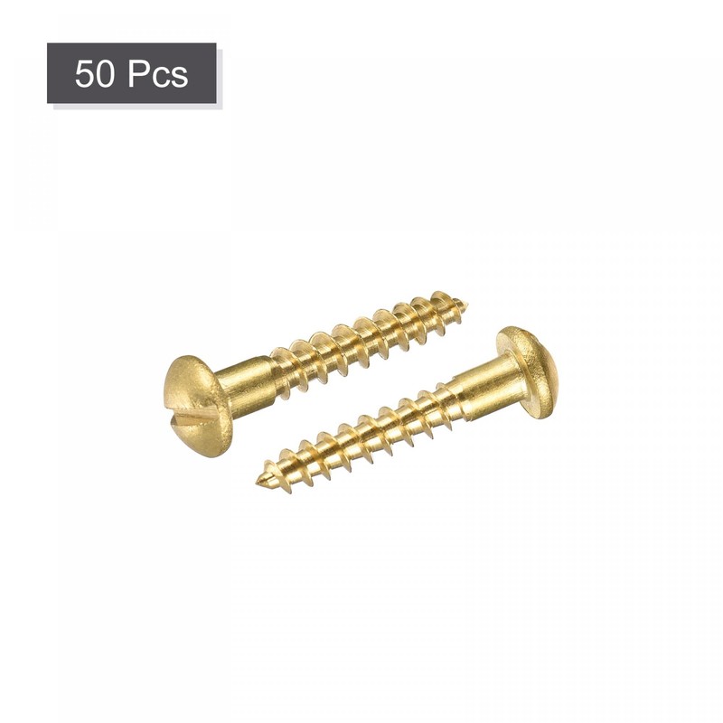 uxcell Wood Screws Slotted Round Head Brass Self Tapping Screws M3.5x20mm 50pcs