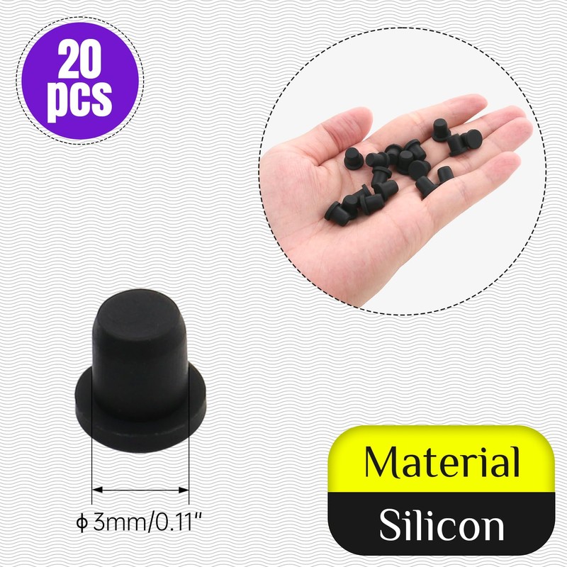 - 【T Shaped Silicone Plug Material】:Silicone ;Color:Black;Height x outer diameter:7x7mm;Mount hole diameter:3mm;In the package of:20pcs x Hole Plugs