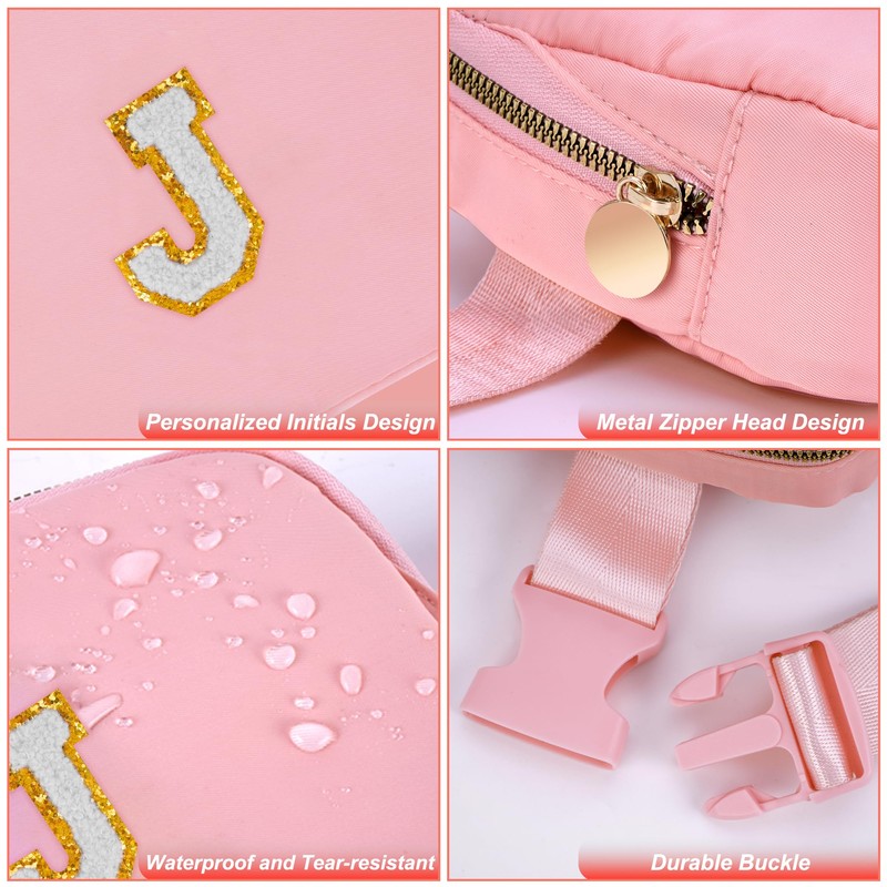 - HIGH QUALITY MATERIAL:Made of waterproof nylon material,but please do not immerse it in water.This fanny pack is designed with a round metal zipper head and personalized initials for a stylish and elegant look