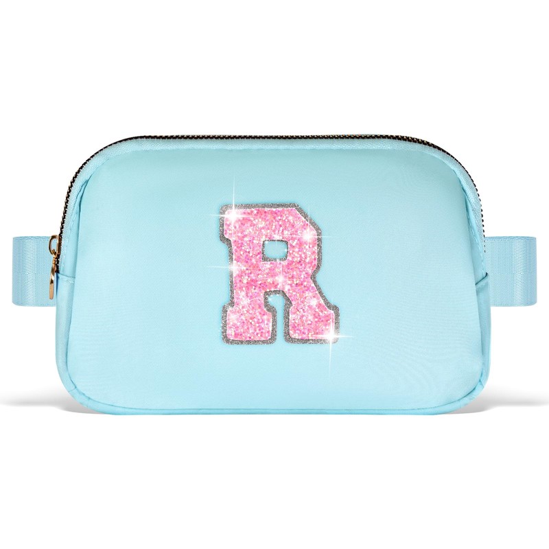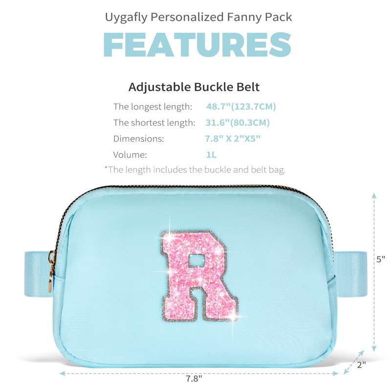 Uygafly Small Waist Fanny Pack Belt Bag for Girls Women Crossbody with Initial, Blue, 7.8" L x 5" W x 1.37" H, R