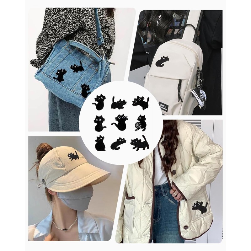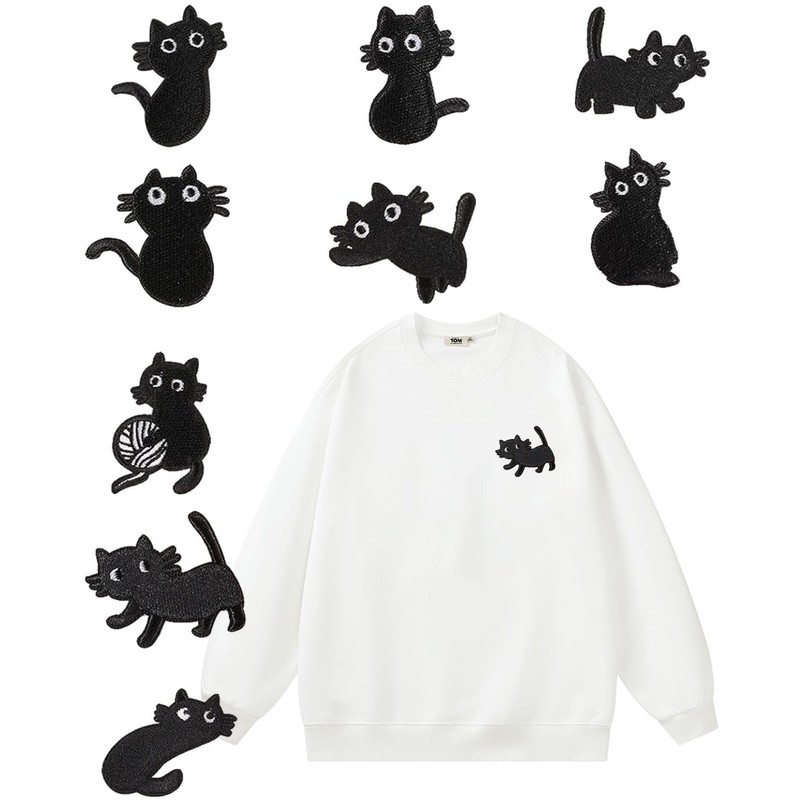 - Widely Used 9 pieces black cat iron on patches, perfect for T-shirts, skirts, jeans, vests, hats, backpacks, clothes, curtains, pillows, scarves, quilts and more. Ideal for decorating or mending clothes, perfect for handmade arts and crafts projects.