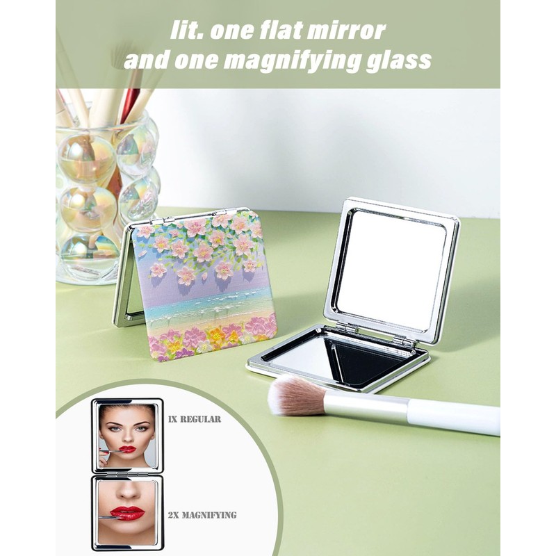 Vielseitige Vergrößerungsoptionen: Dieser tragbare, kompakte Spiegel bietet einen 1-fachen Spiegel und eine praktische 2-fache Vergrößerung und eignet sich daher für eine Vielzahl von Schönheitsaufgaben, vom allgemeinen Gebrauch bis hin zu detaillierten Aktivitäten wie Pinzetten oder Auftragen von Mascara.