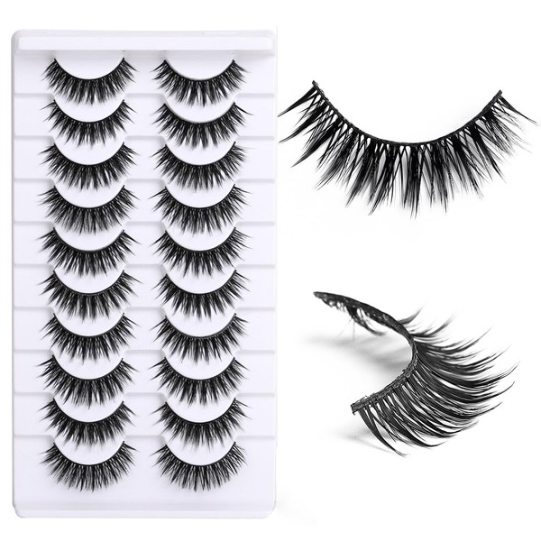 Uytrrsvd 10 Pairs Natural Look False Eyelashes - Wispy Lashes Soft Fluffy Flared Eyelash Clusters, Black Natural Lashes for Everyday Gentle & Elegant Look (HH21-03)